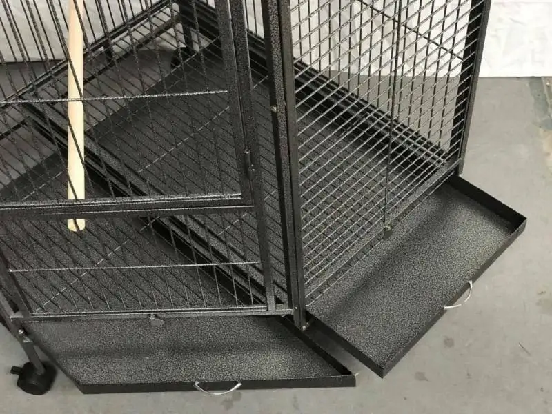 Le revêtement en poudre de cette cage renforce sa résistance aux intempéries, la rendant parfaite pour une utilisation en intérieur comme en extérieur. De plus, son design astucieux, avec un fond amovible et des accessoires en acier inoxydable, facilite le nettoyage. Vous pourrez ainsi maintenir un environnement sain sans effort, ce qui est primordiale pour le bien-être de vos oiseaux.